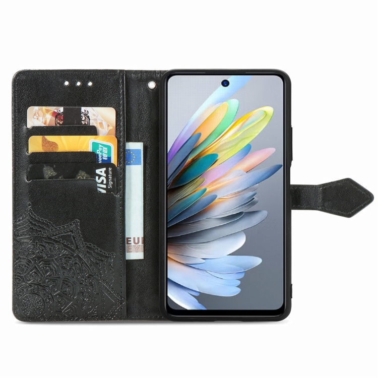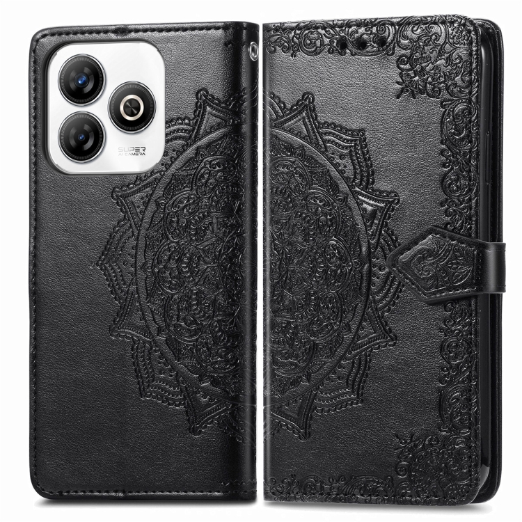 Funda de Cuero ZTE Blade A75 4G con Relieve Flor de Mandala (Negra)