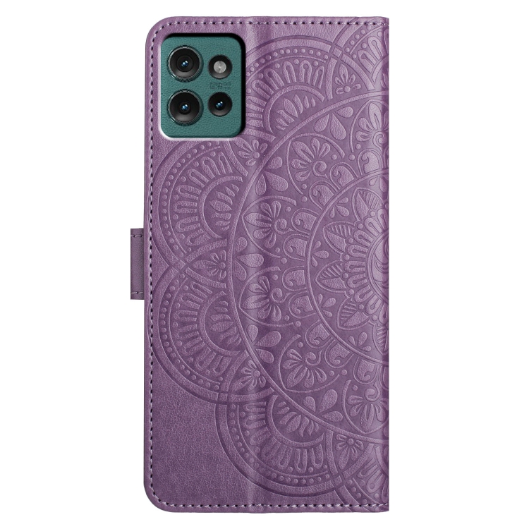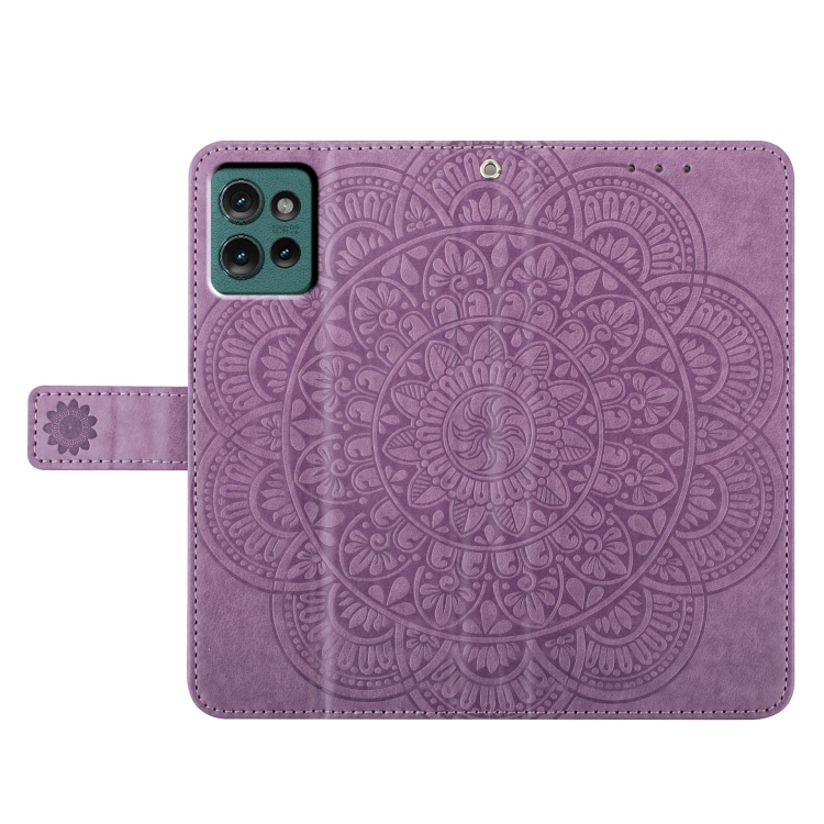 Funda de Piel con Relieve Floral para Motorola Edge 50 5G (Morada)