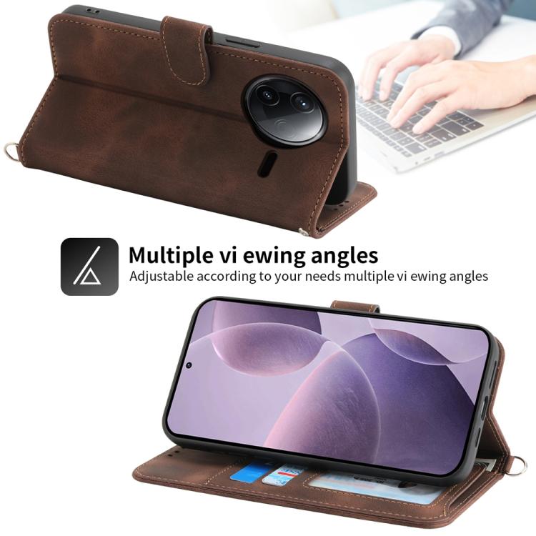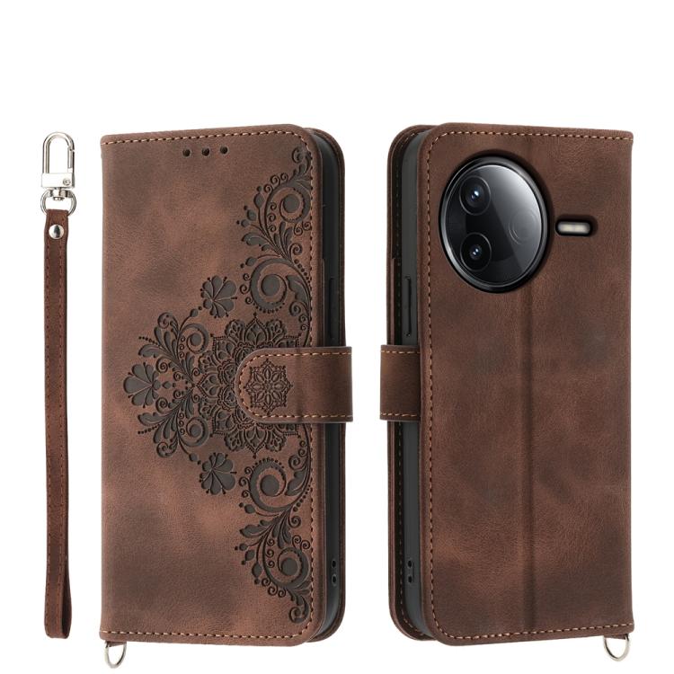Funda de cuero con relieve de flores para Redmi K80/K80 Pro (marrón)