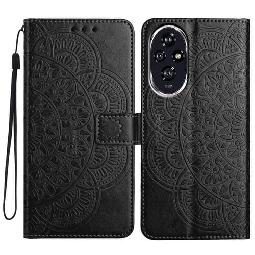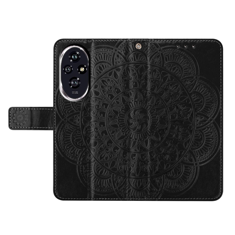 Funda de Cuero con Relieve Floral para Honor 200 (Negra)