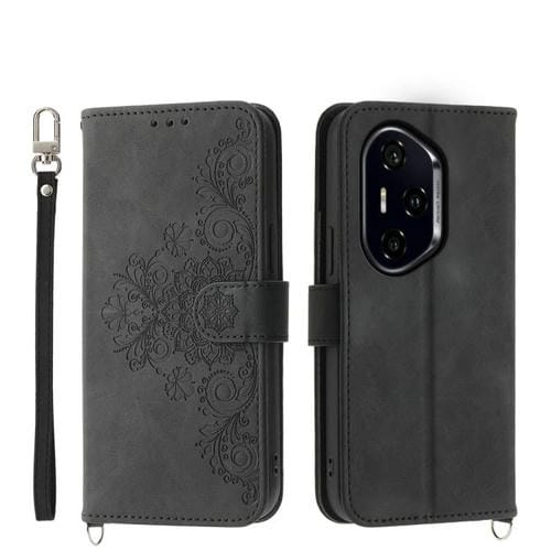 Funda de Cuero con Relieve de Flores para Honor 300 Pro y 300 Ultra (Negro)
