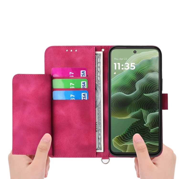 Funda de Cuero con Relieve de Flores para Motorola Moto G35 (Rojo Vino)