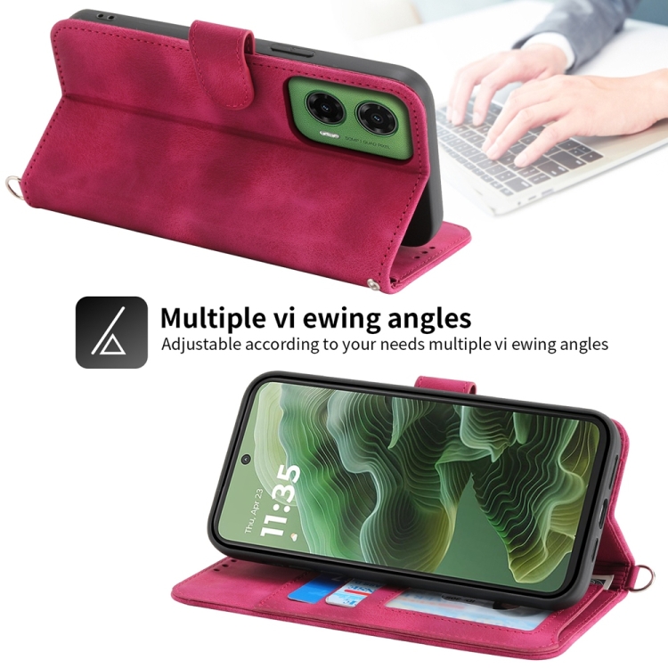 Funda de Cuero con Relieve de Flores para Motorola Moto G75 5G (Rojo Vino)