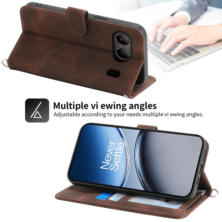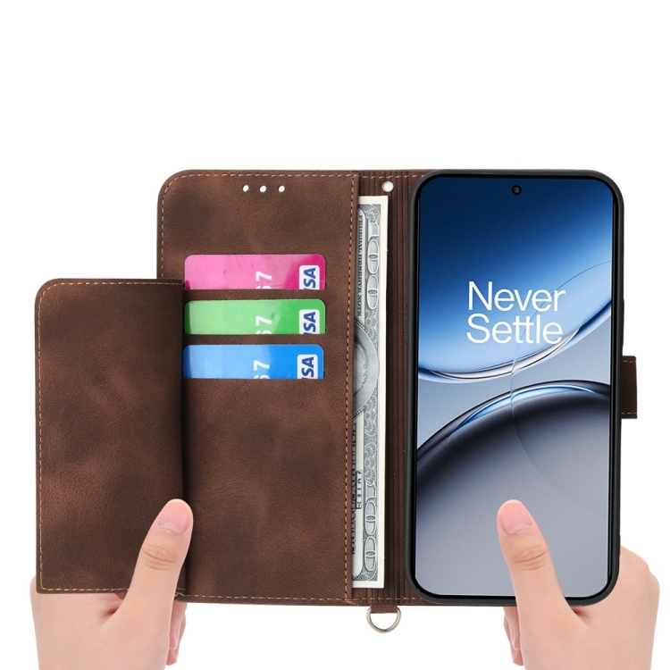 Funda de Cuero con Relieve de Flores para OnePlus Nord 4 5G (Marrón)