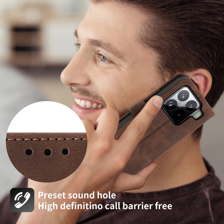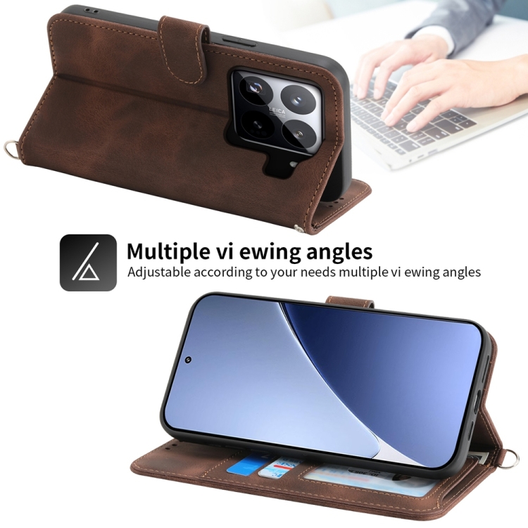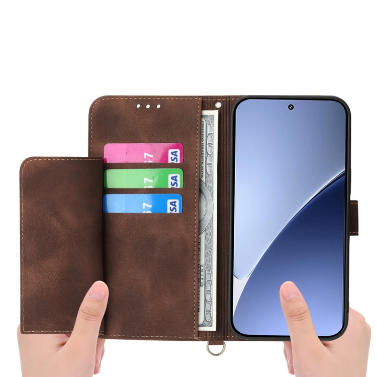 Funda De Cuero Con Relieve De Flores Y Tacto De Piel Para Xiaomi 15 Pro (Marrón)