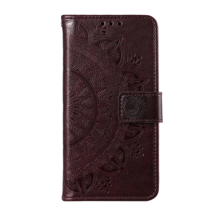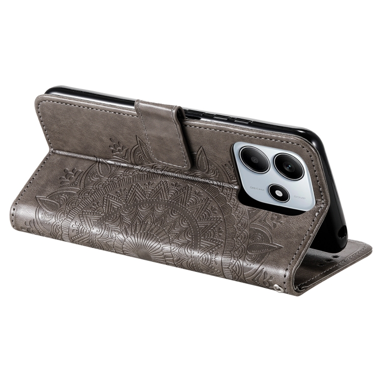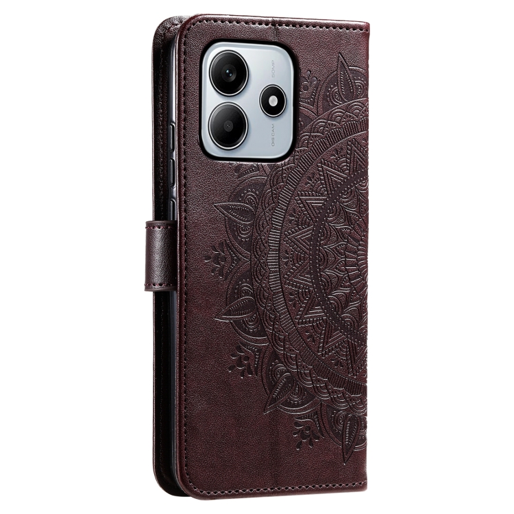 Funda de Cuero con Relieve de Flores y Tótem para Xiaomi Redmi Note 14 5G con Cordón (Marrón)