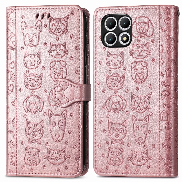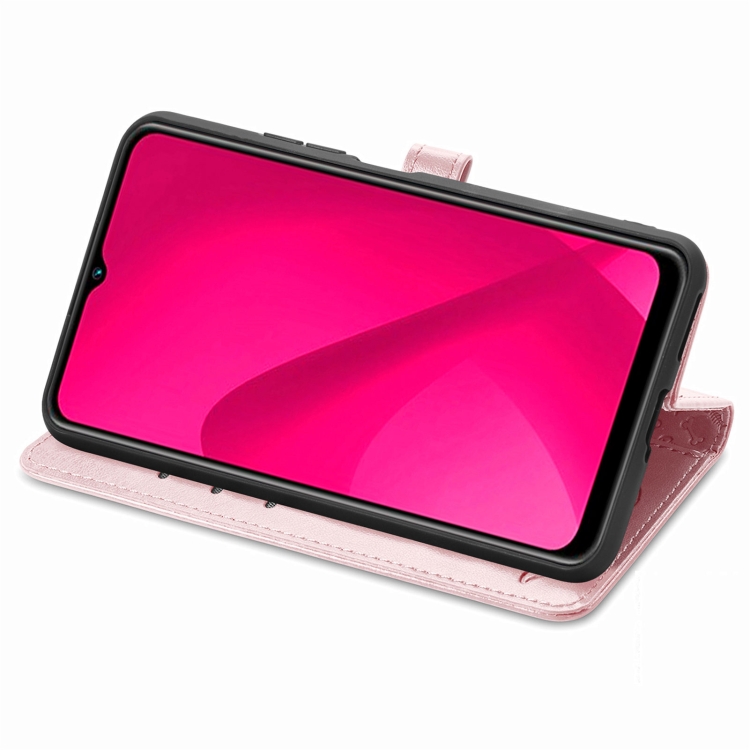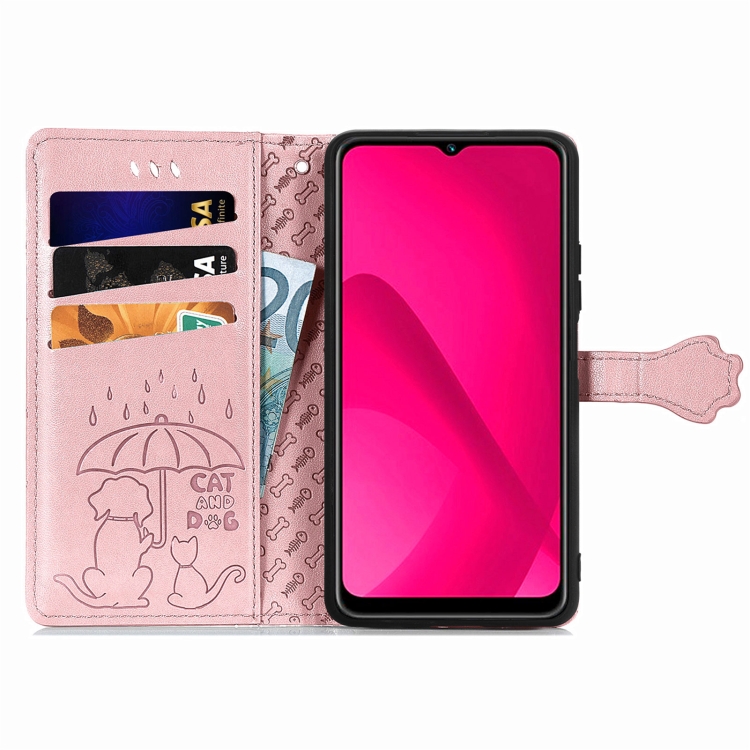 Funda de Cuero con Relieve Gato y Perro para T-Mobile T Phone 2 Pro 5G (Oro Rosa)