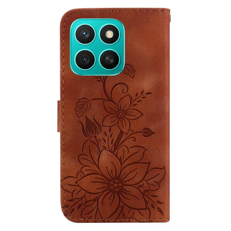 Funda de Cuero con Relieve de Lirio para Honor X8C 4G (Marrón)