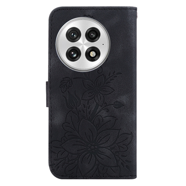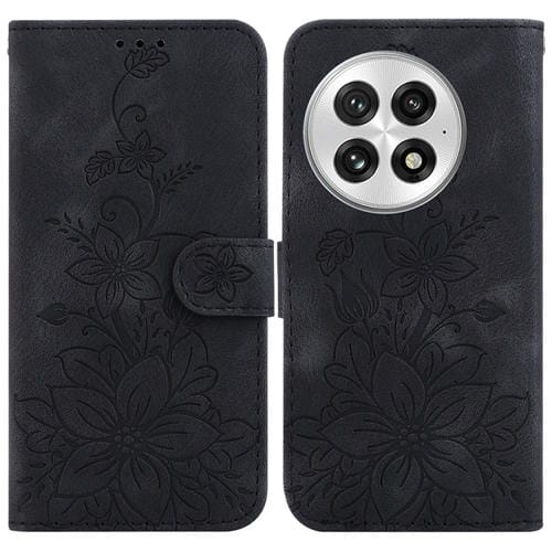 Funda de Cuero con Relieve de Lirio para OnePlus 13 (Negra)