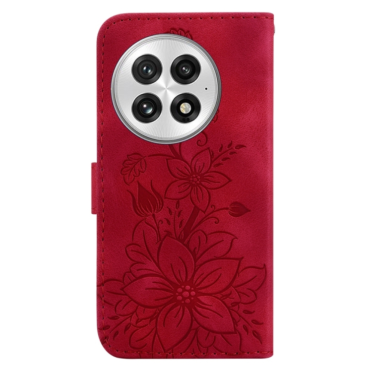 Funda de Cuero con Relieve de Lirio para OnePlus 13 (Roja)