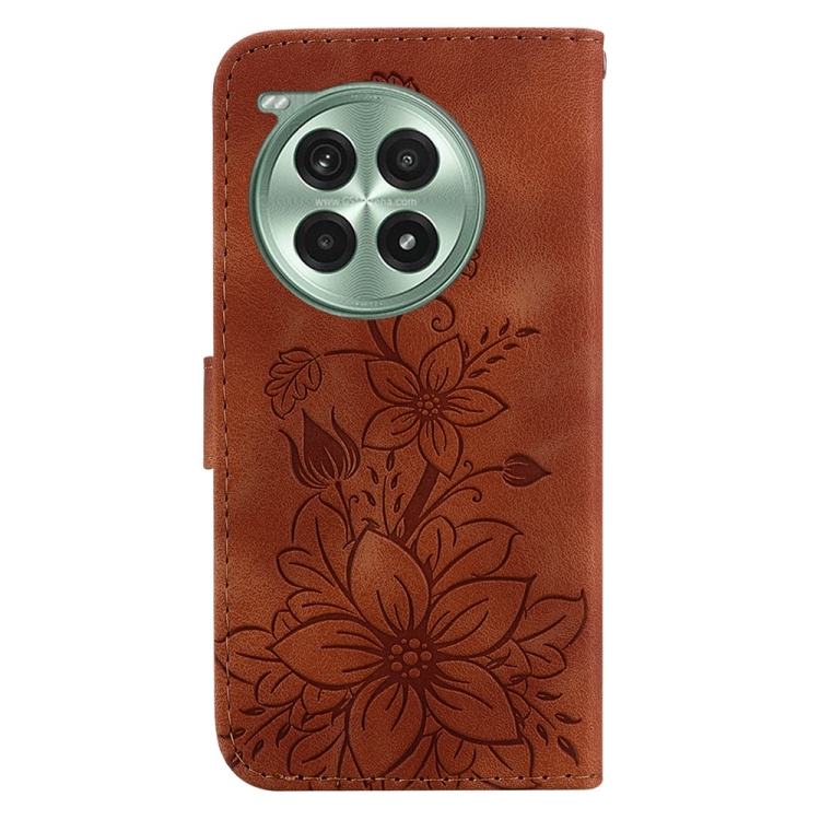 Funda de Cuero con Relieve de Lirios para OnePlus Ace 3 Pro (Marrón)