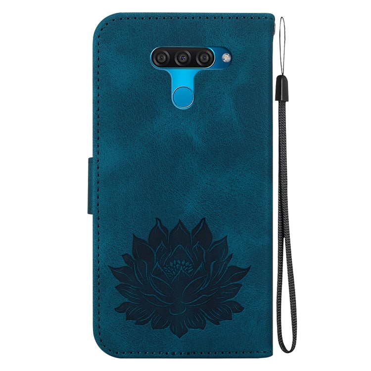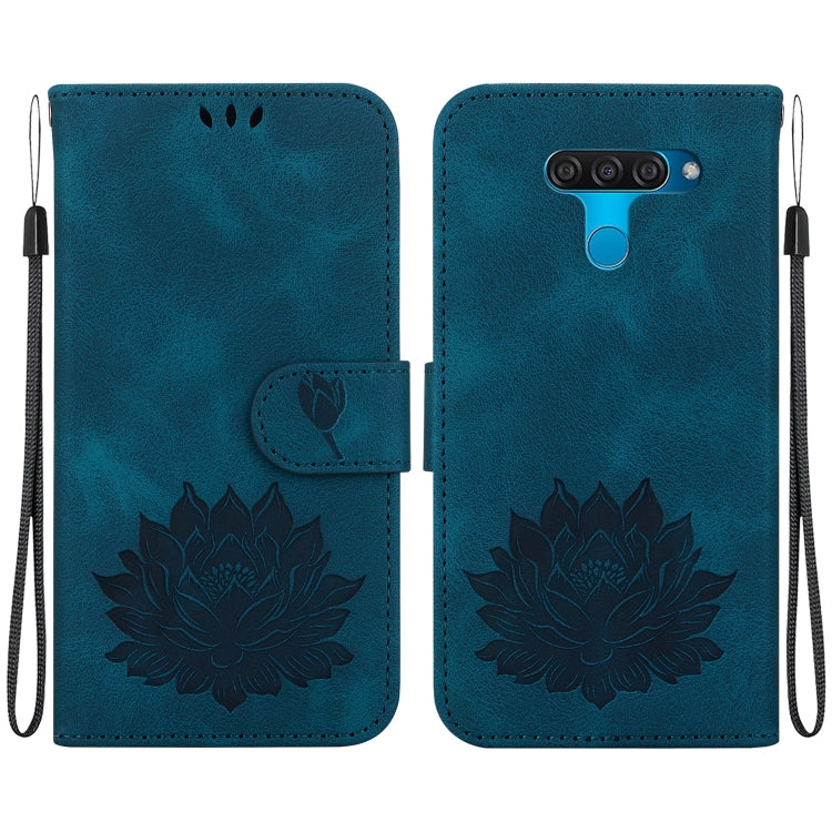 Funda de Cuero con Relieve de Loto para LG K50/Q60 (Azul Oscuro)