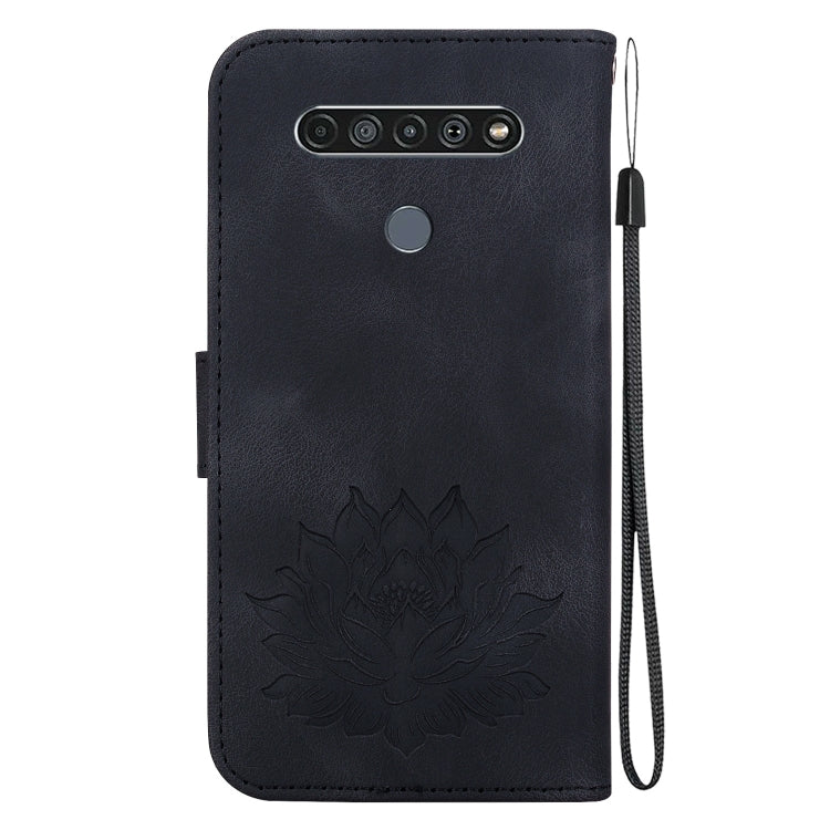 Funda de Cuero con Relieve de Loto para LG K61 (Negra)