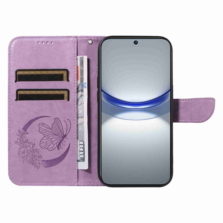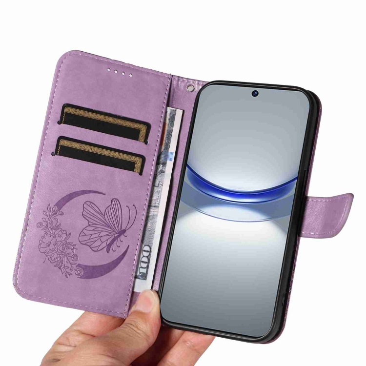 Funda de Cuero con Relieve Mariposa en Forma Cola de Golondrina para Huawei Nova 11 5G/12S 4G (Morado)