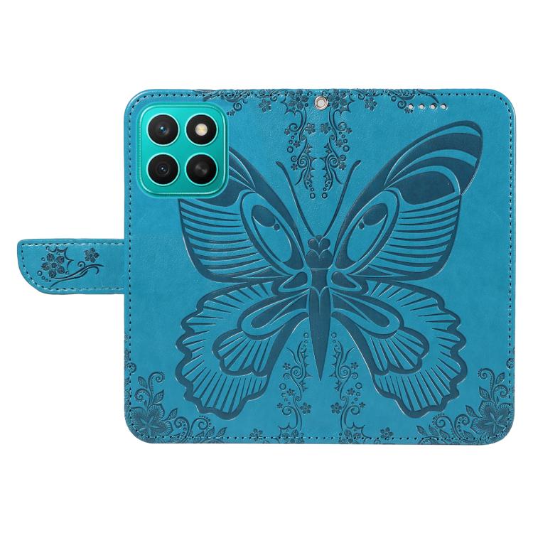 Funda de Cuero con Relieve Mariposa para Honor X8C 4G (Azul)