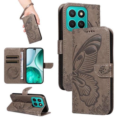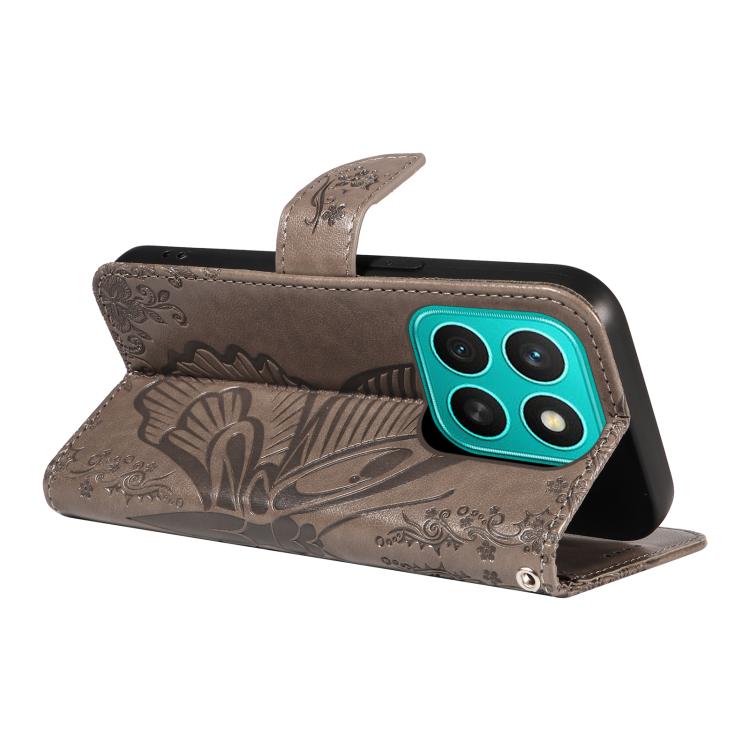 Funda de Cuero con Relieve Mariposa para Honor X8C 4G (Gris)