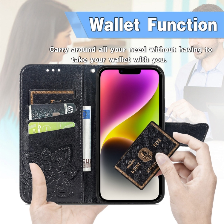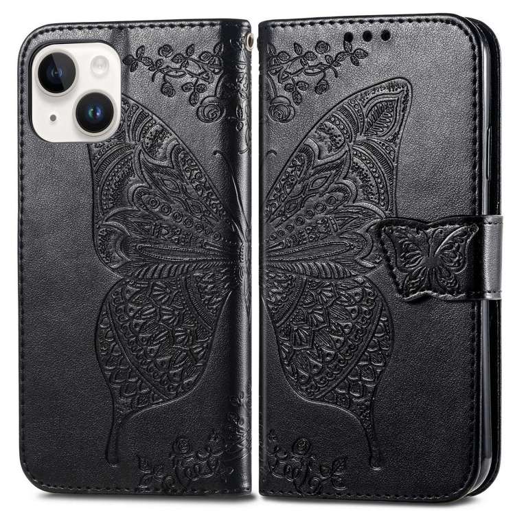 Funda Cuero con Relieve Mariposa para iPhone 14 (Negro)