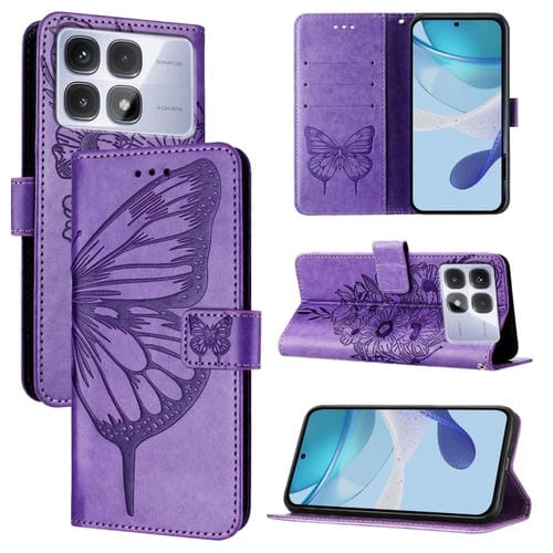 Funda de Cuero con Relieve de Mariposa para Redmi K70 Ultra 5G (Morado Claro)