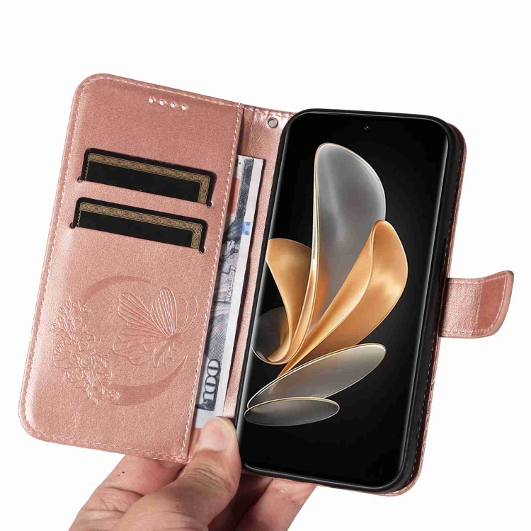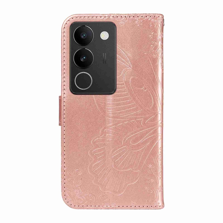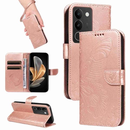 Funda de Cuero con Relieve de Mariposa para Teléfono Vivo V29 5G (Oro Rosa)