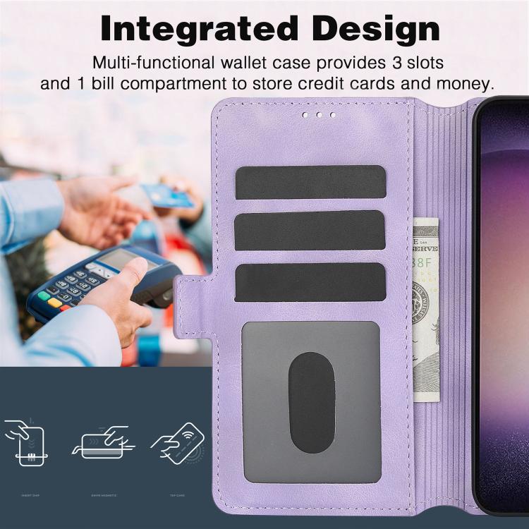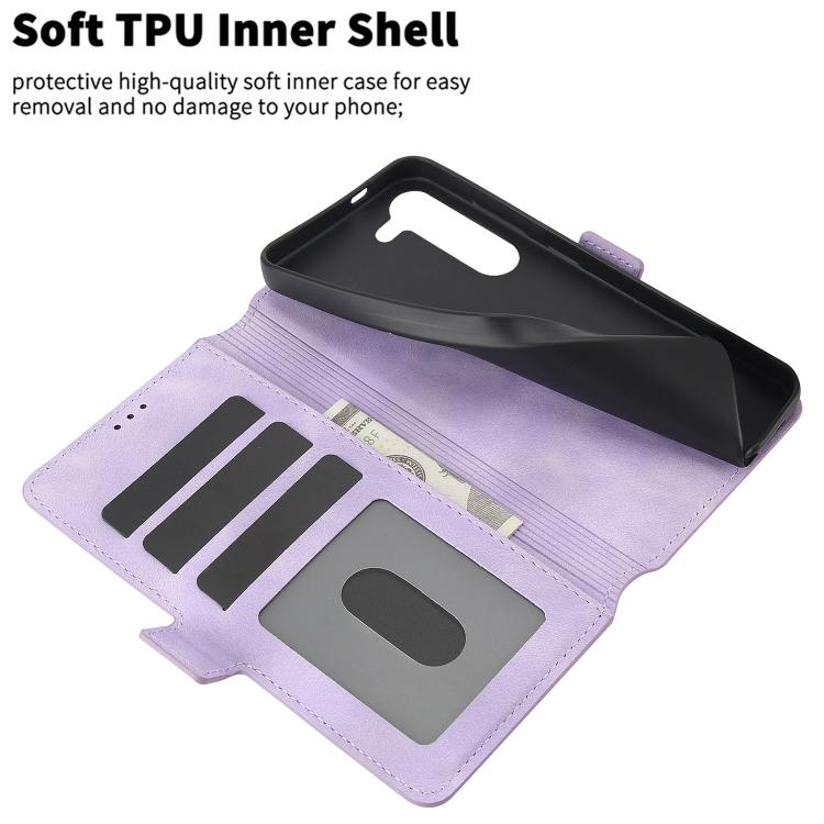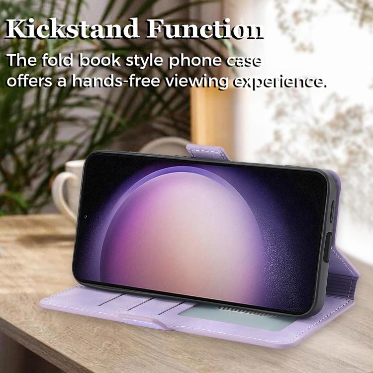 Funda Cuero Samsung Galaxy S23+ 5G Relieve Mariposa Flor Amor (Morado)