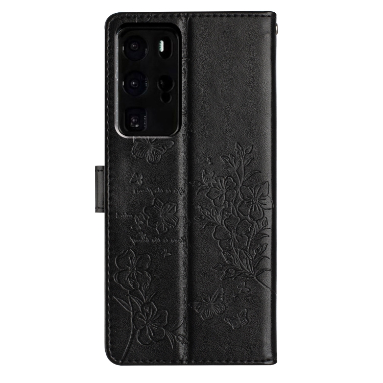 Funda de Cuero con Relieve Mariposa y Flor para Huawei P40 Pro (Negra)