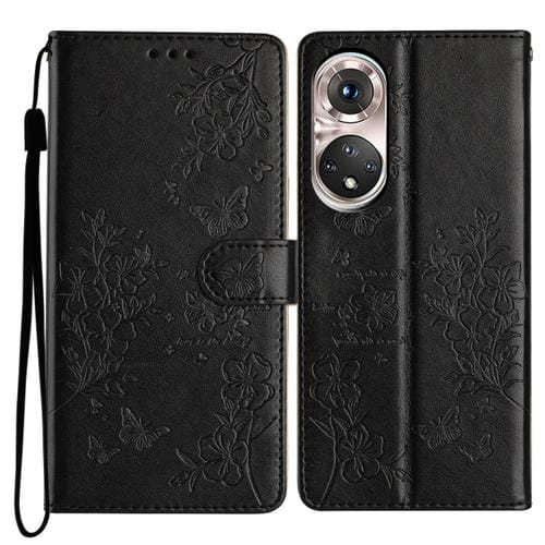 - 1x Funda de Cuero con Relieve de Mariposa y Flor para Huawei P50 (Negra)