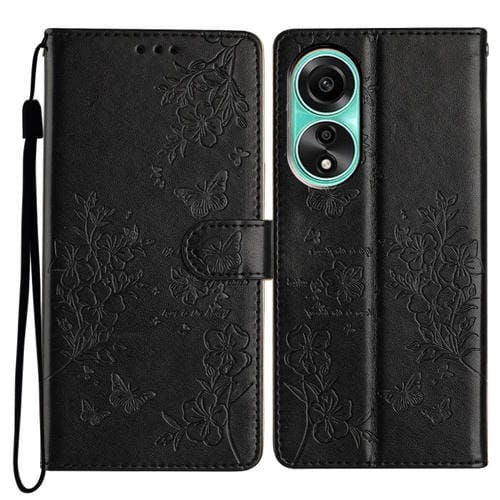 Funda de Cuero con Relieve de Mariposa y Flor para Oppo A58 4G Global (Negra)