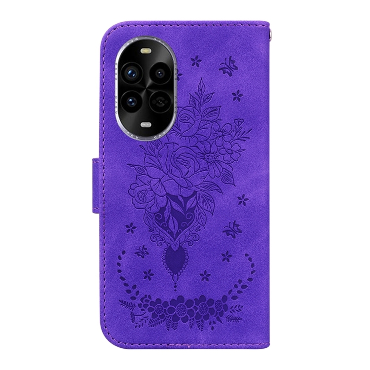 Funda de Cuero con Relieve Mariposa y Rosa para Huawei Nova 13 Pro (Morado)