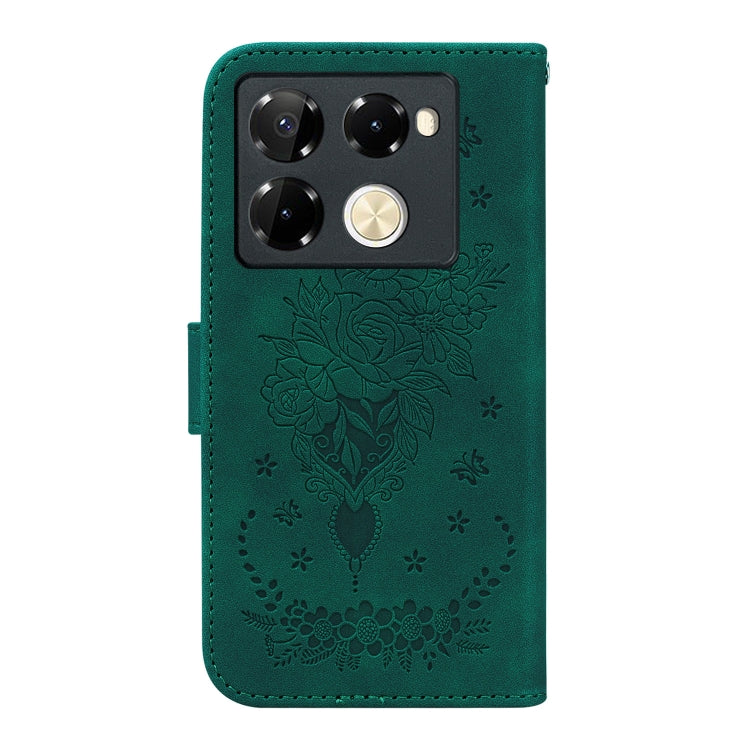 Funda de Cuero con Relieve Mariposa y Rosa para Infinix Note 40 Pro 4G/5G (Verde)