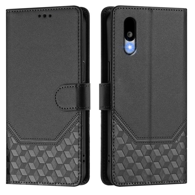 Funda de Cuero con Relieve de Panal RFID para Sharp Basio Active3 (Negra)