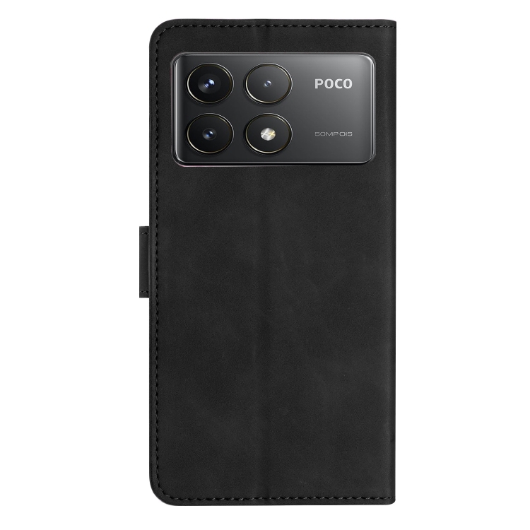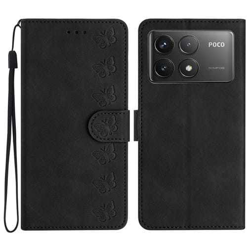 Funda de Cuero con Relieve de Siete Mariposas para Xiaomi Poco F6 Pro (Negra)