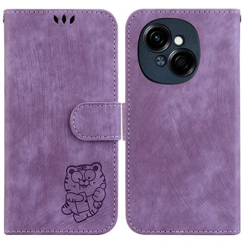 Funda de Cuero con Relieve de Tigre para Tecno Spark Go 1/Pop 9 Pro (Morado)