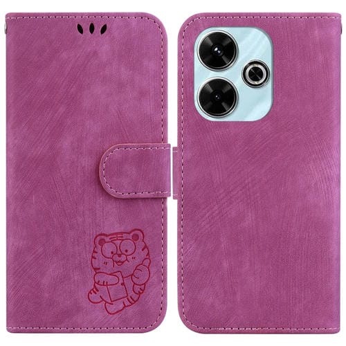 Funda de Cuero con Relieve de Tigre para Xiaomi Poco M6 4G (Rosa Rojo)
