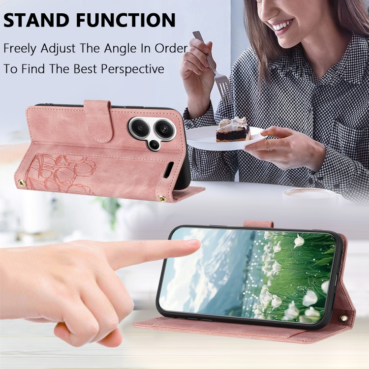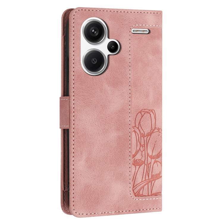Funda de Cuero con Relieve de Tulipanes para Redmi Note 13 Pro+ 5G con Cordón (Rosa)