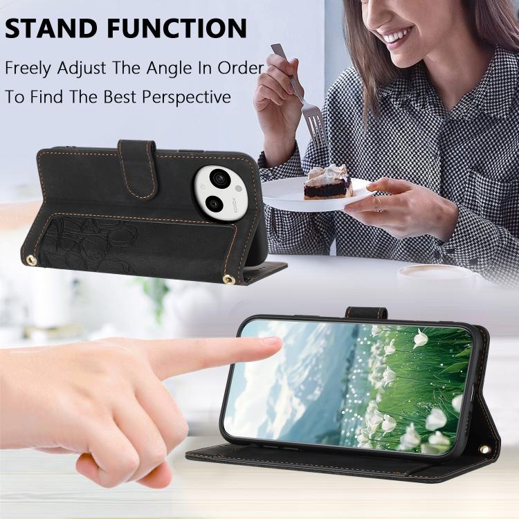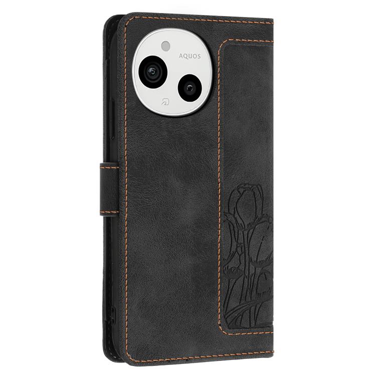 Funda de Cuero con Relieve de Tulipanes para Sharp Aquos Sense9 con Cordón (Negro)