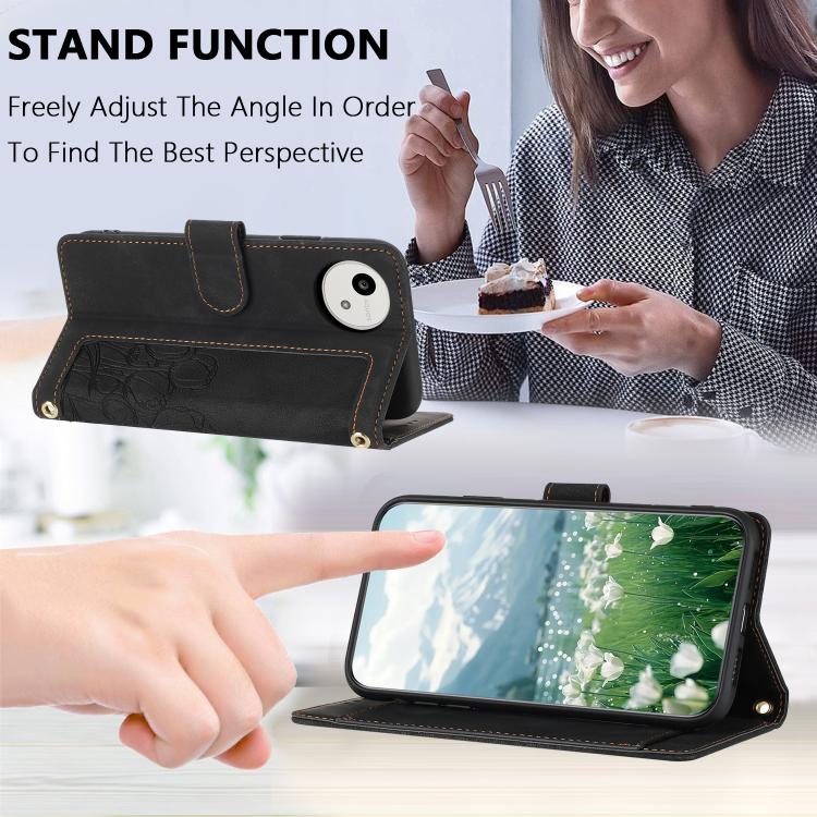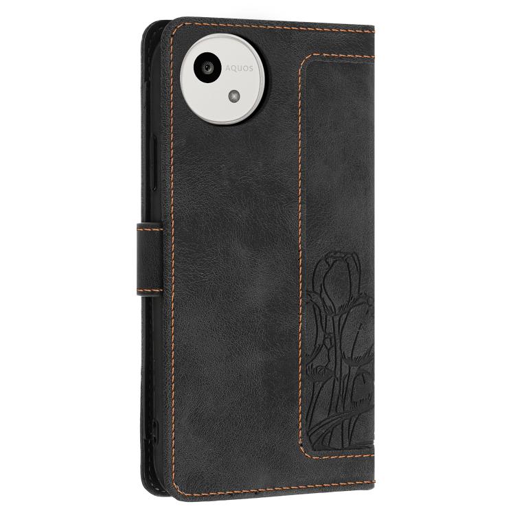 Funda de cuero con relieve de tulipanes y cordón para Sharp Aquos wish5 (negra)