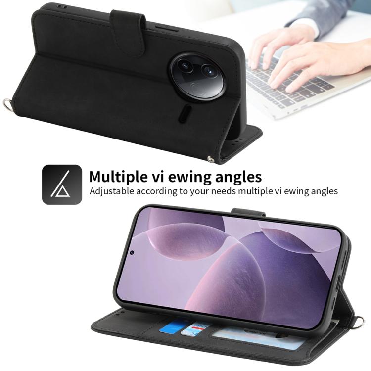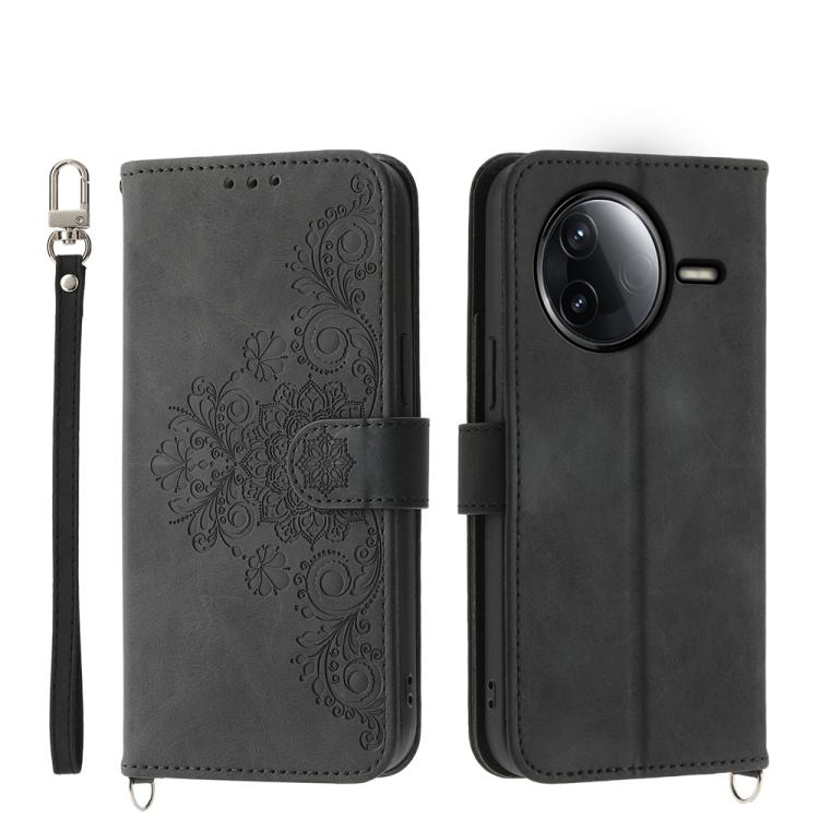 Funda de cuero con relieve floral para Redmi K80/K80 Pro (negro)