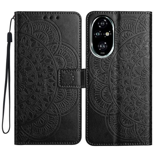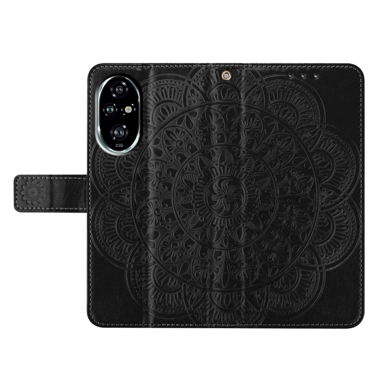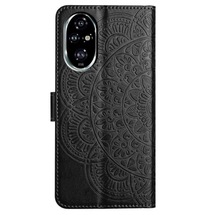 Funda de Cuero con Relieve Floral para Honor 200 Pro (Negra)