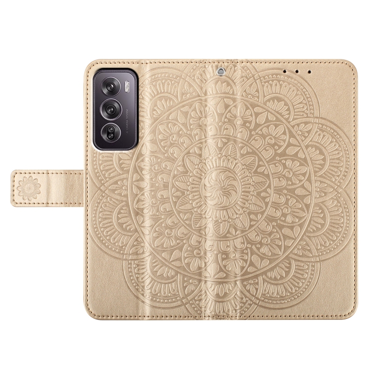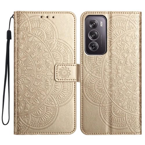 Funda de Cuero con Relieve Floral para Oppo Reno12 Pro (Dorada)