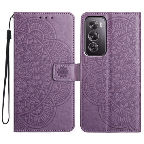 Funda de Cuero con Relieve Floral para Oppo Reno12 Pro (Morado)