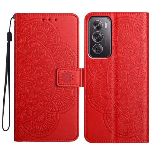 Funda de Cuero con Relieve Floral para Oppo Reno12 Pro (Roja)