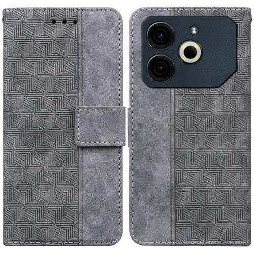 Funda de Cuero con Relieve Geométrico para Teléfono Tecno Pova 6 Neo (Gris)