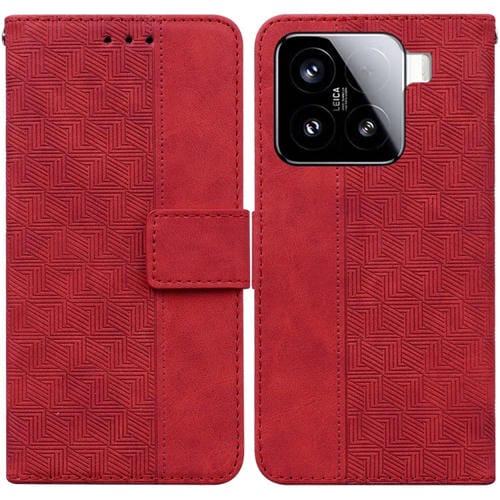Funda De Cuero Con Relieve Geométrico Para Xiaomi 15 (Roja)