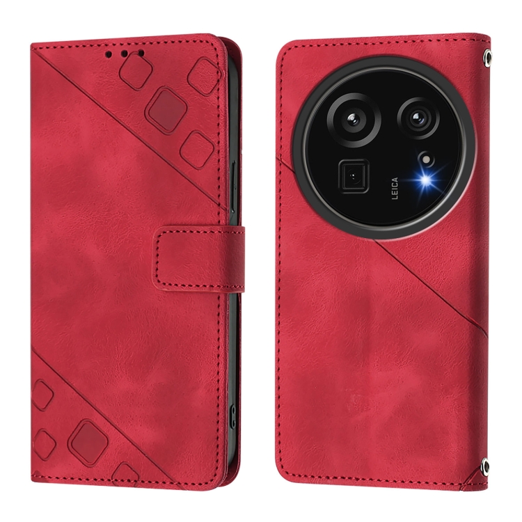 Funda de Cuero con Relieve para Teléfono Sharp Aquos R9 Pro (Rojo)