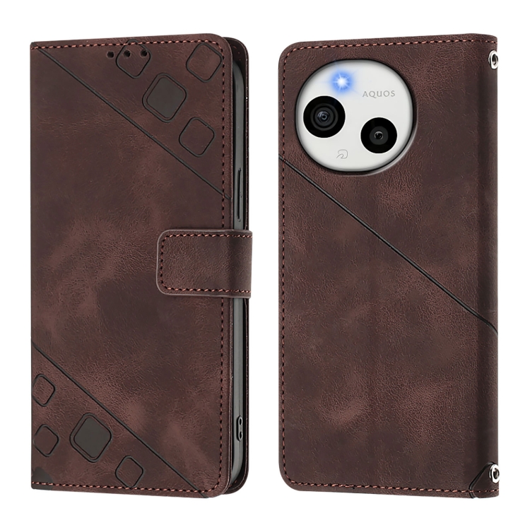 Funda de Cuero con Relieve para Teléfono Sharp Aquos Sense9 Plus (Marrón)