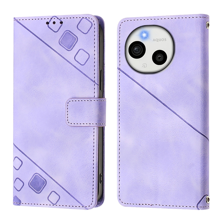 Funda de Cuero con Relieve para Teléfono Sharp Aquos Sense9 Plus (Morado Claro)