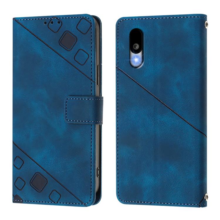 Funda de Cuero con Relieve para Teléfono Sharp Basio Active3 Skin Feel (Azul)