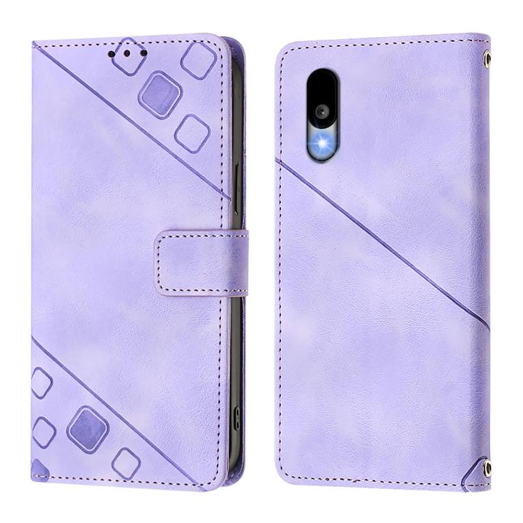 Funda de Cuero con Relieve para Sharp Basio Active3 Skin Feel (Morado Claro)