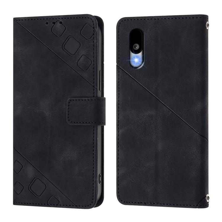 Funda de Cuero con Relieve para Teléfono Sharp Basio Active3 Skin Feel (Negra)