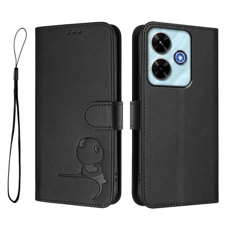 Funda de cuero con relieve RFID y cordón para Redmi 13x / 13 4G / Poco M6 4G (negro)